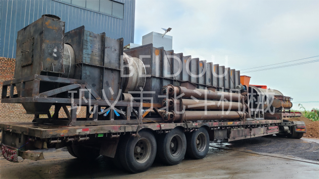 連續式麻桿炭化設備迎著藍天與白云發往安徽地區